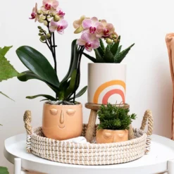 Das absolut trendstarke Pflanzen-Arrangement Happy Face harmoniert ideal mit den verschiedensten aktuellen Wohntrends. Und Sie setzen mit einem einzigen Deko-Ensemble einen wunderschönen Akzent. Eine Freude, die Sie vielleicht auch Ihrer liebsten Freundin gönnen würden? Dann verschenken Sie doch eines der hochwertigen, 8-teiligen Sets. Die Freude wird riesengroß sein. Und der dekorative Karton, in dem das Set bei Ihnen ankommt, macht etwas ganz Besonderes daraus!