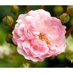 Die breitbuschig wachsende Bodendeckerrose ‚The Fairy®‘ in Rosa taucht Ihren Garten von Juni bis Oktober in ein regelrechtes Blütenmeer. Die stark gefüllten, kleinen, rosafarbenen Blüten dieser öfterblühenden Pflanzen blühen unermüdlich und machen aus jeder brachen Fläche einen echten Blickfang. Dazu ist sie relativ robust gegen die gefürchteten Pilzkrankheiten wie Mehltau und Sternrußtau.