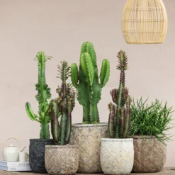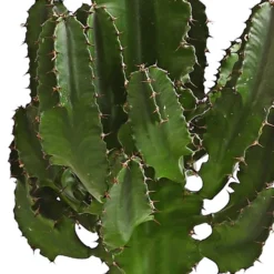 Schon die interessante Wuchsform, die an alte, mehrarmige Kerzenleuchter erinnert, sichert diesem imposanten Zimmergenossen die volle Aufmerksamkeit jeden Betrachters. Aber die Abessinische Wolfsmilch von Dehner setzt nicht nur auf eine faszinierende Figur, sondern möchte auch durch Größe imponieren. Deshalb wächst die Sukkulente relativ schnell und bemüht sich, ihre maximale Wuchshöhe von 3 m zu erreichen. Und was das für ihre Wirkung im Wohnraum bedeutet, kann sich jeder ausmalen! Die Abessinische Wolfsmilch stammt ursprünglich aus Äthiopien und ist eine sukkulente Staude mit den typischen, dickfleischigen Blättern bzw. Trieben. Zwischen Juli und August trägt die Zimmerpflanze orangegelbe Blüten, die ihren exotischen Reiz noch steigern.