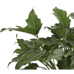 Finden Sie auch, dass Wohnräume ohne Pflanzen kahl und unbelebt wirken? Es muss ja nicht gleich ein undurchdringlicher Dschungel sein, den Sie kreieren, schon mit wenigen ausgewählten Zimmerpflanzen holen Sie ein Stück Natur ins Haus. Und das Grün der Blattschmuckpflanzen ist erwiesenermaßen eine Wohltat für die Augen! Mit dem Philodendron ‘Xanadu‘ können wir Ihnen einen Vertreter aus der großen Familie der Aronstabgewächse vorstellen. Die meisten der 250 Philodendron-Arten sind wahre Kletterkünstler und schwingen sich in den tropischen Regenwäldern ihrer Heimat in Mexiko und der Karibik bis in die höchsten Baumwipfel. Der Baumfreund ‘Xanadu‘ aber bleibt lieber auf Blickhöhe, so dass Sie besser die mittelgroßen, gekerbten und geäderten Blätter bewundern können, die die schlanken Blattstiele krönen. Gerade durch den buschig kompakten Wuchs erweist sich der Baumfreund als ein echter Allrounder, die willig an vielen Stellen im Haus seine immergrüne Blätterpracht präsentiert.