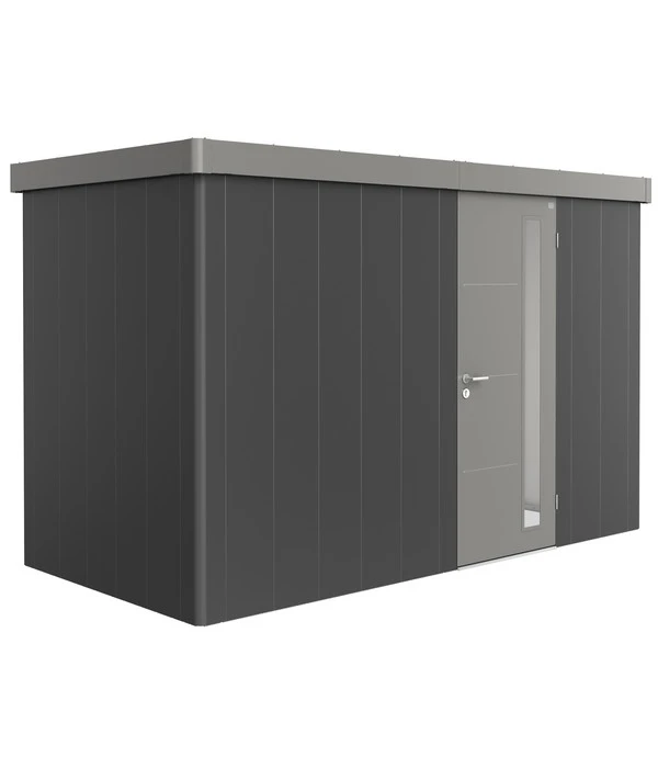 Das „Sahnehäubchenˮ ist beim Gerätehaus Neo 1D von Biohort ganz eindeutig das Design. Es lässt das kubische Bauwerk mit sanft glänzenden Wänden, gerundeten Gebäudekanten und Flachdach elegant und modern wirken. Dabei fügt es sich mit seiner klaren Linienführung und der dezenten Farbstellung harmonisch in Ihre Gartenlandschaft ein.