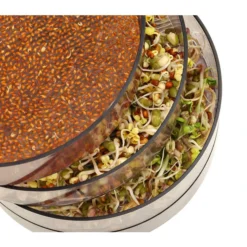 In einer Keimsprosse steckt die gebündelte Kraft des Samenkorns. Die Keimlinge von Radieschen, Bockshornklee und Co. sind sehr wohlschmeckend und bereichern unsere Speisen mit vielen gesunden Nährstoffen. Sie im Supermarkt zu kaufen ist eher lästig, deren Frische oft zweifelhaft. Wer hingegen ein Dehner Sprossenhaus besitzt, kann sich stets absolut frisch und bequem bedienen, wenn Salat oder Gemüse mit den köstlichen Keimen aufgepeppt werden sollen. Es verfügt über 4 geräumige Schalen, die sich aufeinander stapeln lassen. Die Anzahl der Schalen kann je nach Belieben geändert werden. Der Deckel sorgt fürs passende Treibhausklima und die unterste Schale fängt überschüssiges Wasser auf, damit es entsorgt werden kann. Das Dehner Sprossenhaus wurde aus hochwertigem, klarem Kunststoff gefertigt und kann zur Reinigung sogar in die Spülmaschine. Außerdem ist sie frei von Bishphenol A.