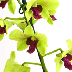 Orchideen besitzen die spektakulärsten und farbenfrohesten Blüten, die Mutter Natur sich ausgedacht hat. So auch bei dieser, zum Teil aus dem Großraum Asiens stammende, Dendrobium-Gattung. Sie wächst vorwiegend in Monsungebieten als sogenannte Aufsitzerpflanze. Das bedeutet nichts anderes, als dass die Orchidee sich mit ihren Luftwurzeln an anderen Pflanzen, wie beispielsweise Baumstämme, festklammern. Diese üppig blühende Exotin, ist eine Kreuzung zwischen Dendrobium und Phalaenopsis, was man sehr gut an ihren traumhaft schönen Blüten sieht, welche der einer Schmetterlingsorchidee sehr ähnlich sind. Diese sitzen über den lanzettlichen, dunkelgrünen Blättern, welche man wiederrum von der Dendrobium nobile kennt. Trotz ihrer extravaganten Lebensweise hat sie sich hierzulande als edle Zimmerpflanze etabliert.