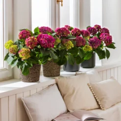 Hortensien sind immer eine gute Geschenkidee, kaum jemand wird sich nicht über eine solch geballte Blütenpower freuen. Und mit der Spitzenqualität der Dehner Premium Bauernhortensie wird der Beschenkte lange Freude an der Zimmer- und Gartenpflanze haben. Zwar sind Hortensien seit jeher beliebt in rustikalen Bauerngärten, doch die Hortensie ‚Red Beauty‘ erstrahlt in einer Modefarbe, die sich gleichermaßen mit kühlen und warmen Farbtönen im Wohnraum kombinieren lässt. Ob mit dunklem Braun, kräftigen Türkis, zartem Rosé, modernem Grau oder gleichgesinnten Beerentönen – ‚Red Beauty‘ sorgt in jeder Kombination für eine gemütliche Stimmung.