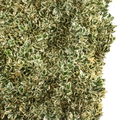 Hier sehen Sie einen Strauch, der sich nicht mit normal grünem Blattschmuck zufriedengeben wollte, sondern jedes seiner ovalen, sattgrünen Blätter zusätzlich mit einem cremeweißen Rand verziert hat, was ihm einen besonders frischen Look gibt. Zumal der Zierstrauch dank seines dicht verzweigten Wuchses hunderte dieser dekorativen Blätter zur Schau stellen kann. Und nicht bodennah, sondern schon vom ersten Tag an auf Augenhöhe mit Ihnen, denn wir bieten Ihnen den Japanischer Spindelstrauch ‘Bravo‘ in einer stattlichen Höhe von ca. 100-125 cm an. Und wenn Sie bald beobachten können, wie er mit mehreren Kollegen einen immergrünen Sichtschutz bildet oder im Beet dekorative Akzente setzt, werden auch Sie bestimmt sagen “Bravo, gut gemacht!“. Jetzt ist nur noch die Frage offen: Was darf der Japanischer Spindelstrauch ‘Bravo‘ bei Ihnen machen?