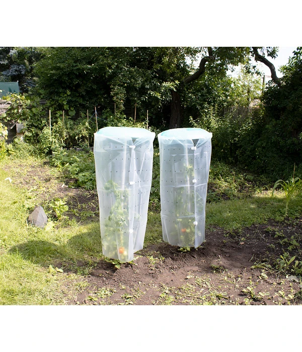 Sie lieben frisches Gemüse wie leckere Tomaten und schmackhafte Paprika und möchten diese Köstlichkeiten gern selbst anbauen? Mit dem Tomatenhut von KHW gelingt Ihnen dies im Handumdrehen, denn dank dieser durchdachten Pflanzhilfe schaffen Sie perfekte Bedingungen, damit Ihre Tomaten und Paprika prächtig gedeihen. Da der Tomatenhut mit einem Bewässerungsschlauch und einer Schutzfolie ausgestattet ist, werden die Wurzeln der Pflänzchen optimal mit Feuchtigkeit versorgt, während Hagel und Dauerregen ihnen nichts anhaben können. Darüber hinaus bietet die Folie auch noch einen Schutz vor Kälte, sodass Sie bis in den Spätherbst frische Tomaten aus eigenem Anbau genießen können.