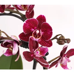 Selbst wenn die zierlichen BlĂĽten dieser Phalaenopsis etwas kleiner sind als die ihrer groĂźblĂĽtigen Schwestern steht diese Midi Schmetterlingsorchidee ihnen in nichts nach. Denn während diese mit ihren groĂźen BlĂĽten prahlen, verzaubert uns die grazile Orchidee mit ihren eindrucksvollen Formen. Ob die zwei BlĂĽtentriebe zu einem attraktiven BlĂĽtenwasserfall, einem Bogen oder Herz geformt sind, der Schmetterlingsorchidee sind damit alle Blicke sicher. Selbst wenn Sie kein renommierter Pflanzenkenner sind und ihr Daumen manchmal mehr braun als grĂĽn erscheint, brauchen Sie bei der Phalaenopsis keine Bedenken haben – dieser tropische Exot ist die ideale Zimmerpflanze fĂĽr einsteigende Orchideen-Freunde.