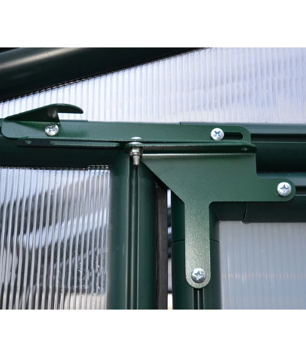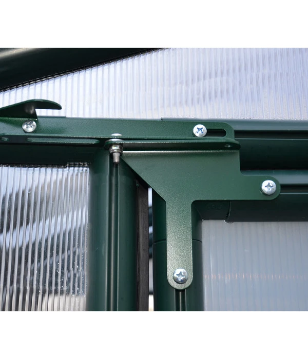 Ihr Rion Green Gewächshaus Prestige ist eine wahre Augenweide, mit seinem Bogendach, den dunkelgrünen Streben und den hochwertigen Hohlkammerplatten. Eine harmonische Gesamterscheinung, deren Design an die traumhaft schönen Gewächshäuser von damals erinnert, wie sie in manch einem großen Botanischen Garten noch heute zu finden sind. Es wird Ihrem Garten das Flair eines Parks verleihen.
