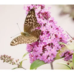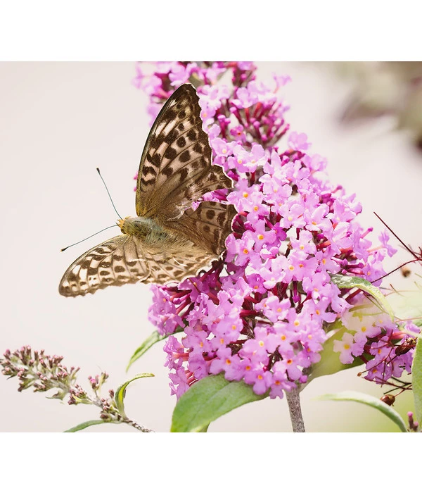 Mit den großen Blütenrispen und dem angenehmen Duft hat der aus China stammende Sommerflieder – auch als Schmetterlingsstrauch bekannt – hierzulande einen festen Platz in bunten Sommergärten. Die Blüten erscheinen bei diesen Hybriden von Juli bis Oktober unermüdlich in Weiß, Rot oder Violett je nach Sorte, und bilden etwa 20 cm lange Rispen an leicht geneigten Zweigspitzen. Da der betörende Duft der Blüten bestäubende Insekten wie Schmetterlinge, Hummeln und Bienen anlockt, leisten Sie mit der Kultivierung in Ihrem Garten einen wichtigen Beitrag zur Arterhaltung.