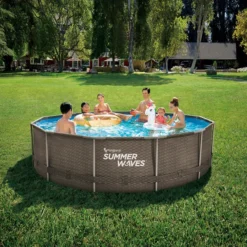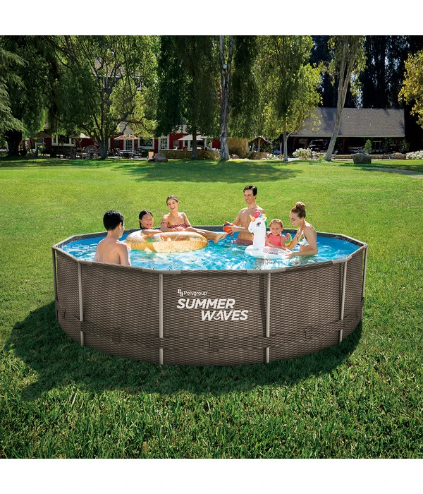Sie genießen den Sommer gerne in Ihrem eigenen Garten und möchten sich bei heißem Wetter zwischendurch einmal abkühlen? Dann ist der Summer Waves Active Frame Pool Rattan genau das Richtige für Sie. Der runde Rahmen-Pool wird oberirdisch aufgebaut und fügt sich dank der modernen Rattan-Optik stilvoll und harmonisch in jede Gartenlandschaft ein. Mit Wasser gefüllt bietet sich ein Badespaß für die ganze Familie – oder feiern Sie ein Poolparty mit Ihren Freunden! Alle werden begeistert sein und Sie um diesen eleganten Pool beneiden!