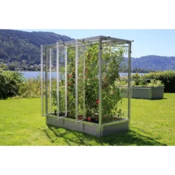 Das Tomatenhaus Julia ist eine robuste Konstruktion aus hochwertigem, verzinktem Stahl und Polycarbonat-Platten. Die Stahlkonstruktion sorgt für die ausgezeichnete Standsicherheit, das Polycarbonat ist sehr schlagfest. Mit seinen 2 m² Grundfläche braucht das Haus nicht viel Platz und kann auch in kleineren Gärten aufgestellt werden, es bietet aber bis zu 5 großen Tomatenpflanzen ein geschütztes Zuhause.