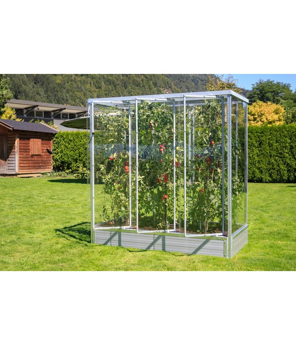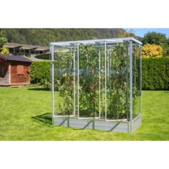 Im Tomatenhaus Julia werden Ihre Tomatenpflanzen besonders groß und kräftig werden und Sie mit vielen, vielen, aromatischen Früchten beschenken, denn in dem Haus herrscht bestes Tomaten-Klima. Dafür sorgen die Wände und das Dach aus Polycarbonat-Platten, die so perfekt isolieren, dass Sie Ihre vorgezogenen Tomatenpflanzen deutlich früher ins Freie bzw. ins Tomatenhaus Julia bringen können. Außerdem sind die Platten gut lichtdurchlässig, bieten aber einen gewissen UV-Schutz. Alle Türelemente sind beweglich, sodass Sie in sommerlichen Hitzeperioden das Tomatenhaus Julia gut belüften können. Außerdem schützt ein wärmegedämmter Unterbau vor kalten Nächten.