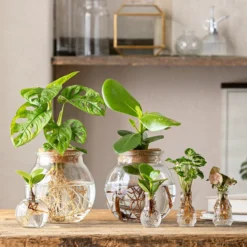 Sie haben noch nichts von dem neuesten Pflanzentrend gehört, bei dem exotische Pflanzen nicht nur ihren prachtvollen Blattschmuck zur Schau stellen, sondern das Bild mit dem Blick auf ihr skurriles Wurzelsystem bereichern? Hydroponik heißt das System, das noch viele weitere Vorteile bietet, denn neben der einzigartigen Optik sind diese Pflanzen außerdem erfreulich pflegeleicht. Mit dem Waterplant Balsamapfel im Kugelglas ‘Princess‘ können wir Ihnen die hydroponische Variante des dekorativen Balsamapfels vorstellen, der ursprünglich in den tropischen Regionen Zentral- und Südamerikas beheimatet ist, seit einigen Jahren aber bei uns als Zimmerpflanze Karriere macht. Er zeigt die gleichen dickfleischigen, dunkelgrün glänzenden Blätter wie seine Kollegen im Regenwald oder im Pflanztopf, er wächst aber hier in einer Vase aus stabilem Glas. Und braucht nicht viel mehr als Wasser. Klingt faszinierend? Ist es auch! Lassen Sie deshalb bald den Waterplant Balsamapfel im Kugelglas ‘Princess‘ sein einzigartiges Flair bei Ihnen verbreiten!