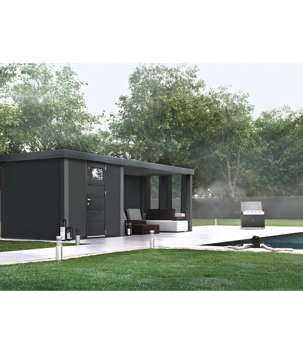 Wenn Sie Ihren Freunden bald erzählen, dass Sie in Ihrem Garten jetzt einen Flachdachbau haben, der sogar über einen stylishen, offenen Loungebereich verfügt, denken wahrscheinlich die wenigsten an ein Gerätehaus. Und genau genommen ist ein Wolff Finnhaus Metallgerätehaus Eleganto 2424 inkl. Lounge rechts auch weitaus mehr als das. Schon die hochwertige Bauweise mit den besonders starken, verzinkten und dreifach beschichteten Metallwänden und selbst Kleinteilen in hoher Materialqualität sind der beste Beweis dafür, dass Sie sich hier für ein exquisites Garten-Highlight in Top-Qualität entscheiden. Für den besonderen optischen Reiz ist das moderne und gleichzeitig dezente Design verantwortlich, dessen Wirkung durch die hochwertige Verarbeitung der Elemente noch unterstützt wird. Verleihen Sie Ihrem Garten mit einem Wolff Finnhaus Metallgerätehaus Eleganto 2424 inkl. Lounge rechts ein völlig neues Flair!