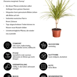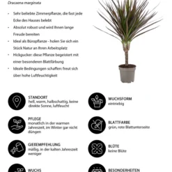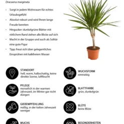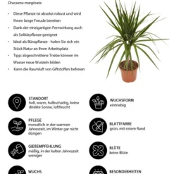 So ein Drachenbaum ist absolut unkompliziert in der Pflege und daher auch für Anfänger eine schöne Option. Selbst wenn Sie bisher kaum Berührungspunkte mit Zimmerpflanzen hatten, werden die Pflänzchen schnell wachsen und gedeihen. Nötig dafür sind nur ein paar Punkte wie Standort und Gießverhalten. Gegossen werden möchte ein Drachenbaum nur mäßig, wünscht sich aber dennoch einen luftfeuchten, hellen und warmen Standort. Direkte Sonne mag er nicht, Halbschatten dagegen ist geeignet. Monatliche Düngergaben während der Wachstumsperiode unterstützen die Pflanze beim Größerwerden, im Winter benötigen Ihre neuen Mitbewohner keinen Dünger.